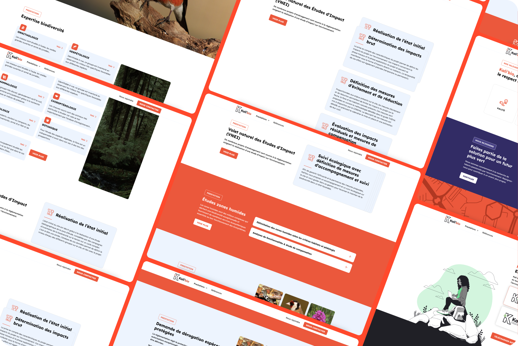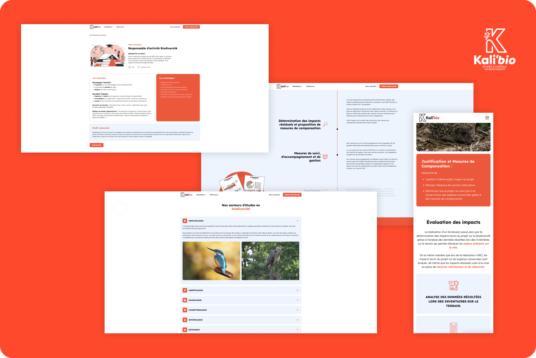 - Kali’Bio : Traduire l’expertise en biodiversité (faune, flore, zones humides) par un design organique, rassurant et rigoureux.