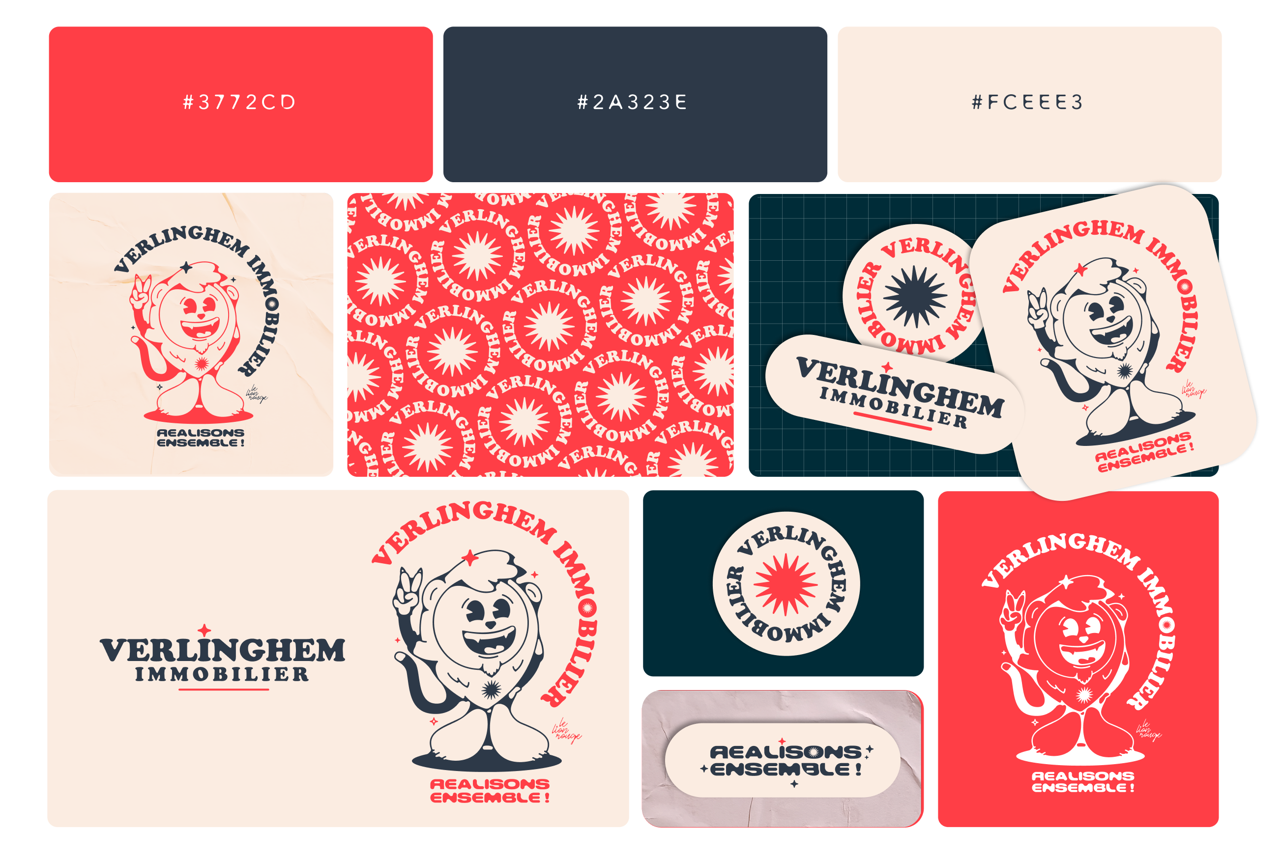 - La piste "Mascotte" : Un lion rouge stylisé en mode cartoon, clin d'œil moderne au blason historique, pour créer un capital sympathie immédiat.